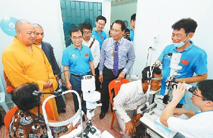 弘法寺还有一张著名的慈善名片——“爱心光明行”。多年来,我们已经免费为成千上万的贫困白内障患者实施复明手术,受益者遍及柬埔寨、老挝、尼泊尔、斯里兰卡,以及非洲一些国家。所到之处,我们除了播撒大爱,更促进人心聚拢,为中外民间友好交往贡献了力量。2016年7月,我获得了柬埔寨首相授予的萨哈密得勒-莫哈施里武勋章(柬埔寨政府授予友好国际人士的最高荣誉),成为首位获此殊荣的中国僧人。