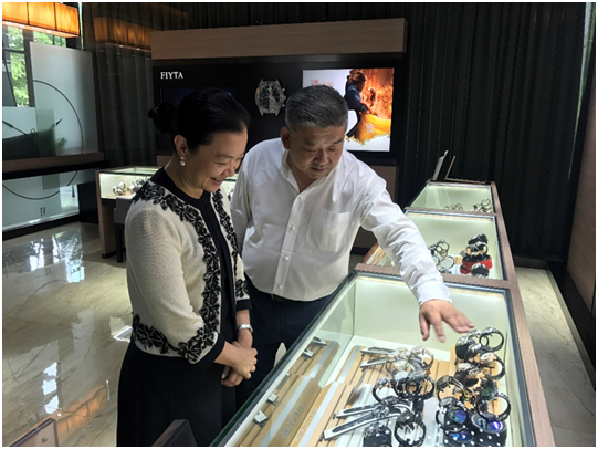 陈倩雯副主席一行参观了飞亚达品牌销售网点,并与公司高管团队座谈交流。飞亚达集团董事长徐东升介绍了飞亚达创立、发展的历程和理念,以及集团在品牌研发、设计、制造和销售方面的成绩,对政府部门的长期支持表示感谢,并希望在品牌培育推广方面获得更多的指导。市经信委、市科创委有关负责同志从品牌支持和技术创新方面作了政策解读和回应。