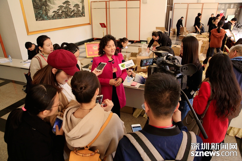 深圳新闻网报道组对政协委员委员钟帆飞进行视频采访,众多媒体围上来联合“作战”