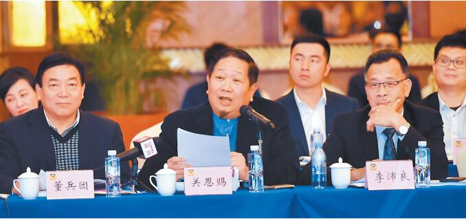 港澳委员关恩赐在港澳委员座谈会上发言。